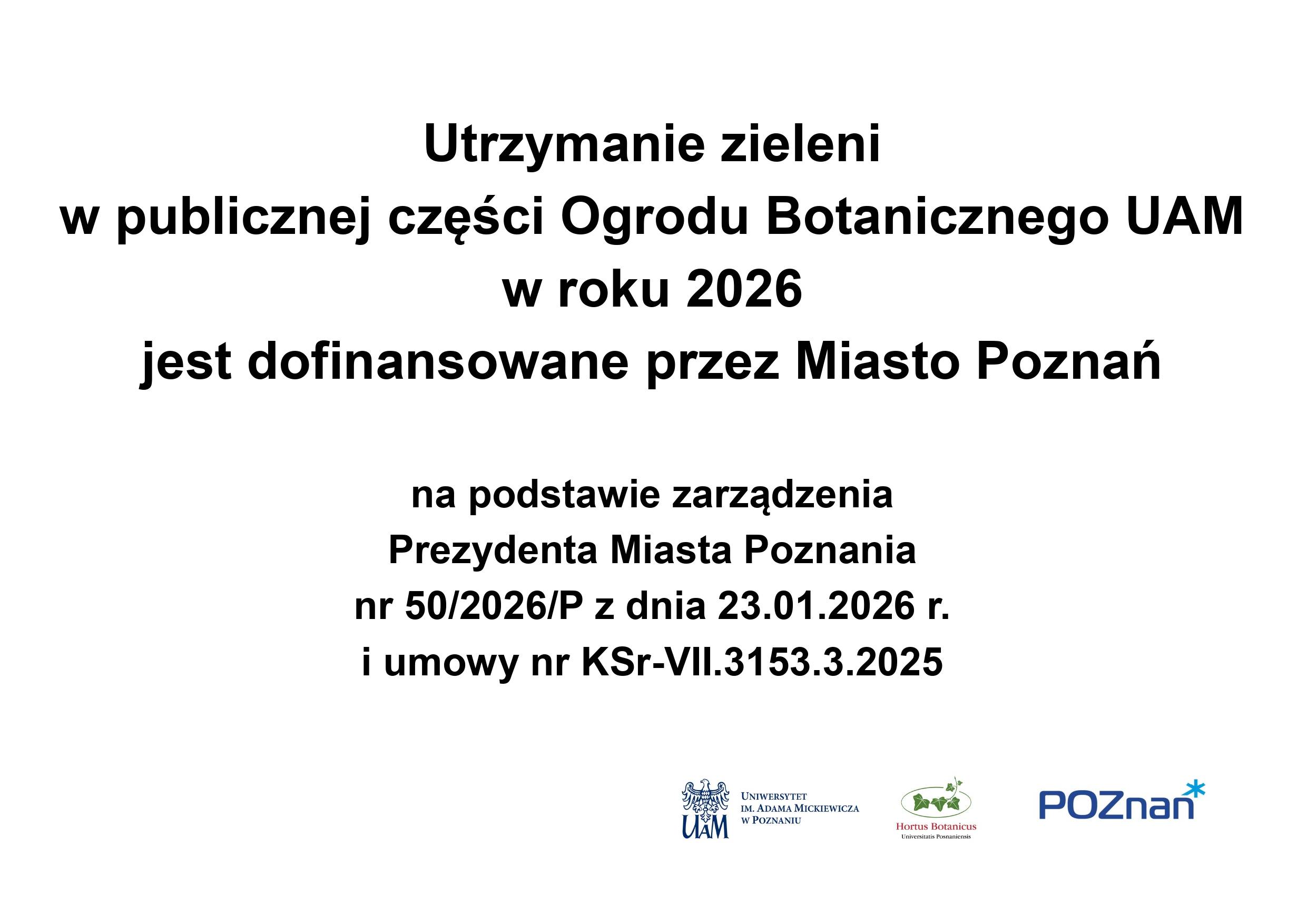 Projekty Utrzymanie zieleni w publicznej części Ogrodu Botanicznego UAM w roku 2026 Ochrona pełnika europejskiego Trollius europaeus International Plant Sentinel Network (IPSN) general surveillance of US host plants Ochrona goździka sinego Dianthus gratianopolitanus w rezerwacie przyrody „Goździk Siny w Grzybnie”